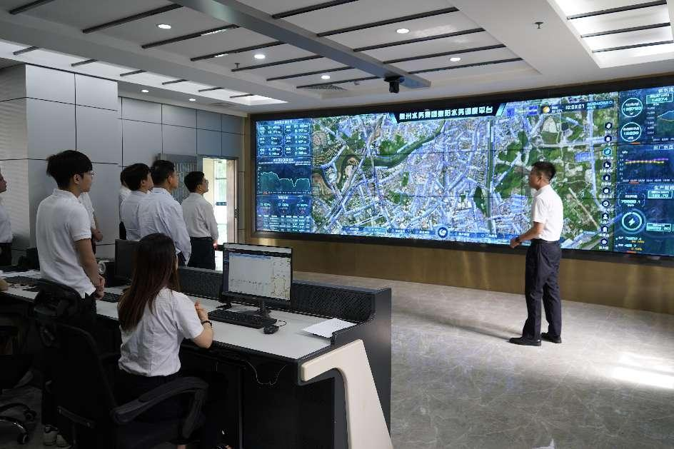 陳勉彬一行首先到惠陽(yáng)水務(wù)供水調(diào)度中心,詳細(xì)了解管網(wǎng)GIS系統(tǒng)、SGADA、智慧消火栓及二次供水泵房監(jiān)控系統(tǒng)等智慧水務(wù)建設(shè)工作,聽取公司供水產(chǎn)能、供水范圍、網(wǎng)格化管理、重點(diǎn)企業(yè)用水保障及供水設(shè)施工程建設(shè)等情況。隨后召開座談會(huì),會(huì)上,惠陽(yáng)水務(wù)公司黨委書記、董事長(zhǎng)李火根匯報(bào)了公司生產(chǎn)經(jīng)營(yíng)情況及2024年工作思路等。