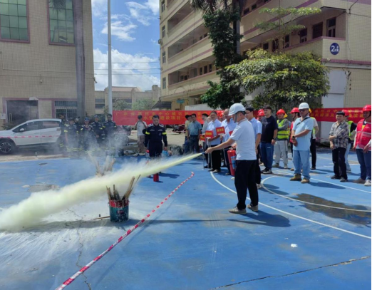 ?滅火器實操演練 參訓(xùn)人員分組使用干粉滅火器撲滅油盆火,譚教官現(xiàn)場糾正操作誤區(qū),強調(diào)“提、拔、握、壓”四步法,確保每位員工都能正確使用消防器材。