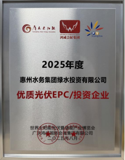 惠州水務集團綠水公司榮膺“2025年度優(yōu)質(zhì)光伏 EPC / 投資企業(yè)”