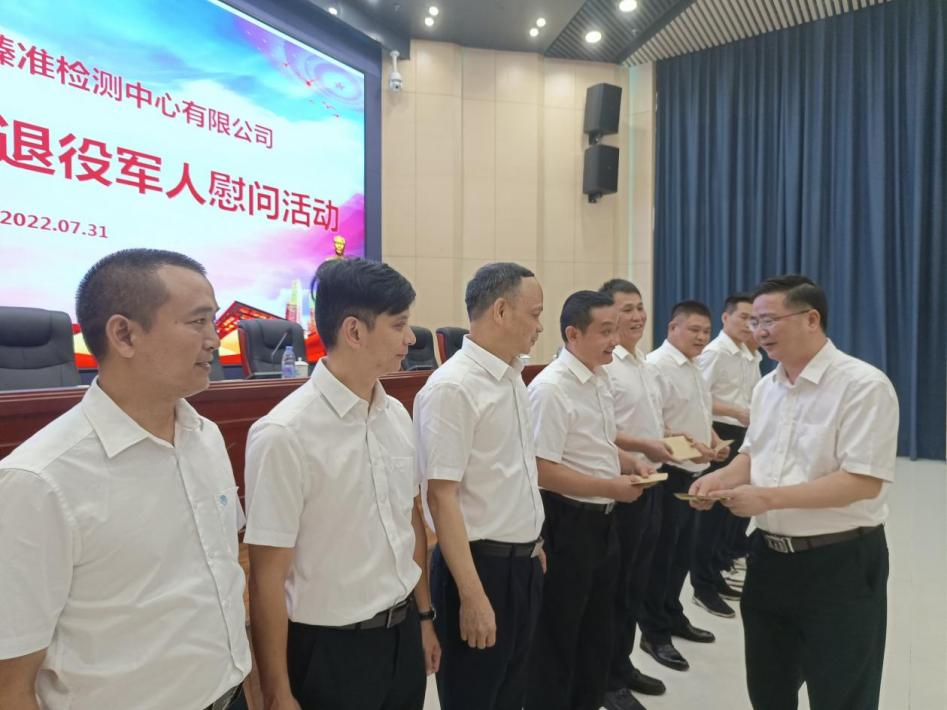 檢測(cè)中心黨支部書記、董事長(zhǎng)李小鴻代表中心向退役軍人員工送上節(jié)日問候并發(fā)放慰問金,感謝他們服兵役時(shí)保家衛(wèi)國(guó)、英勇戰(zhàn)斗、無私奉獻(xiàn),贊揚(yáng)他們退伍復(fù)員后到企業(yè)繼續(xù)發(fā)揚(yáng)服從命令聽指揮的部隊(duì)精神和沖鋒一線、吃苦耐勞的革命精神。