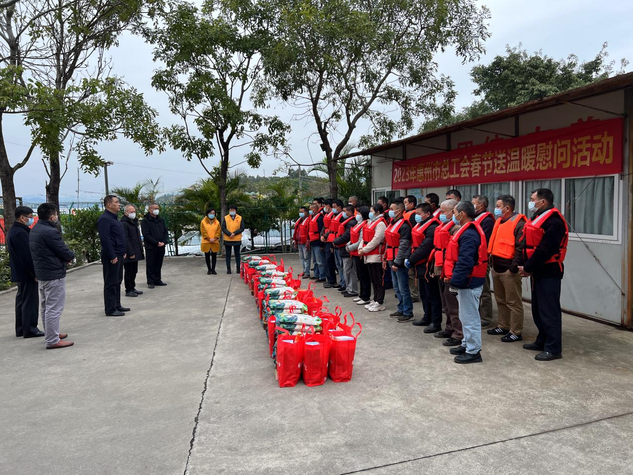 在慰問活動現(xiàn)場,曾明波代表市總工會,向“兩江一河”水面保潔項(xiàng)目一線全體員工致以誠摯問候和新春祝福。他強(qiáng)調(diào),東江、西枝江、新開河穿城而過,連接著惠州市各大片區(qū),是惠州市“親水惠州生態(tài)水城”的城市名片。一直以來,“兩江一河”作為惠州的城市水脈,水生態(tài)環(huán)境保護(hù)工作備受社會各界和市民群眾關(guān)注,“兩江一河”水面保潔一線員工為保護(hù)東江、西枝江、新開河水環(huán)境,早出晚歸,不畏嚴(yán)寒酷暑,不懼臟臭,辛勤工作,讓兩江一河永葆青春靚麗,市總工會代表廣大市民表示感謝和敬意。2023年是學(xué)習(xí)貫徹中共二十大精神的開局之年,希望大家以更加奮發(fā)有為的精神狀態(tài)履職盡責(zé),更好的服務(wù)于社會各界及人民群眾。