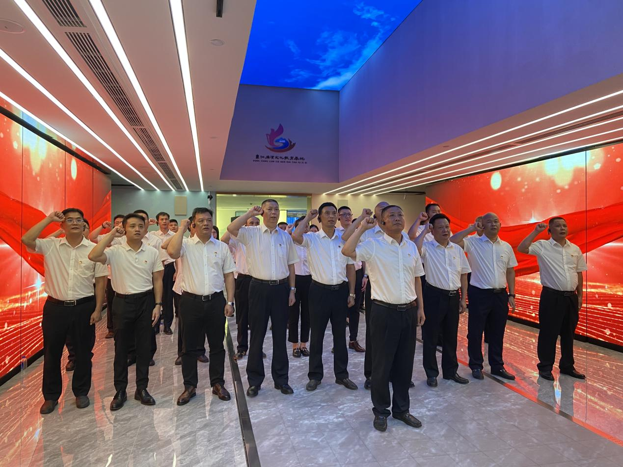 在“廉潔之道”展廳,全體黨員干部在公司黨支部書(shū)記楊寶堂的帶領(lǐng)下,面向黨旗、高舉右拳、莊嚴(yán)地重溫了入黨誓詞,進(jìn)一步堅(jiān)定了初心使命。